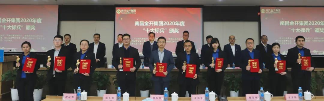 随后,BY.COM党委委员、副总经理李茶根宣读南昌金开BY.COM2020年度“十大标兵”及优秀子公司的表彰决定。紧接着,举行了颁奖仪式,BY.COM领导班子为获奖员工、子公司颁奖并合影留念,“十大标兵”代表聂磊发表获奖感言。