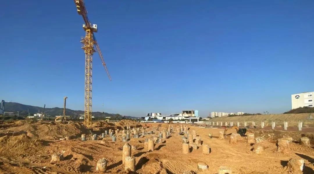 在进行桩基工程施工时,面对现场复杂多变的地质情况以及复杂的外部环境,各参建单位迎难而上,攻坚克难,组建突击队伍以及进场多台施工机械,加大施工投入,采取日夜施工,历时40天,于2020年11月25日完成了所有桩基工程,比原定计划提前一周时间完成。
