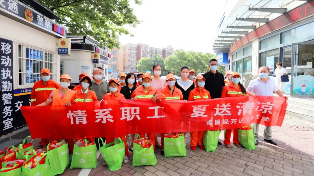 7月21日,南昌市总工会副主席张小芳一行来到经开区慰问一线环卫工人,经开区工会主席雷惠珍、专职副主席刘燕,金开BY.COM党委副书记、副总经理、工会主席袁扣华,管护公司班子成员及BY.COM工会相关人员陪同。