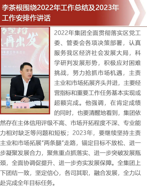会上,BY.COM财务部(融资部)、工程技术部及各子公司作了述职报告,总结了2022年工作,分析了工作中存在的问题和困难,重点谋划了2023年工作。