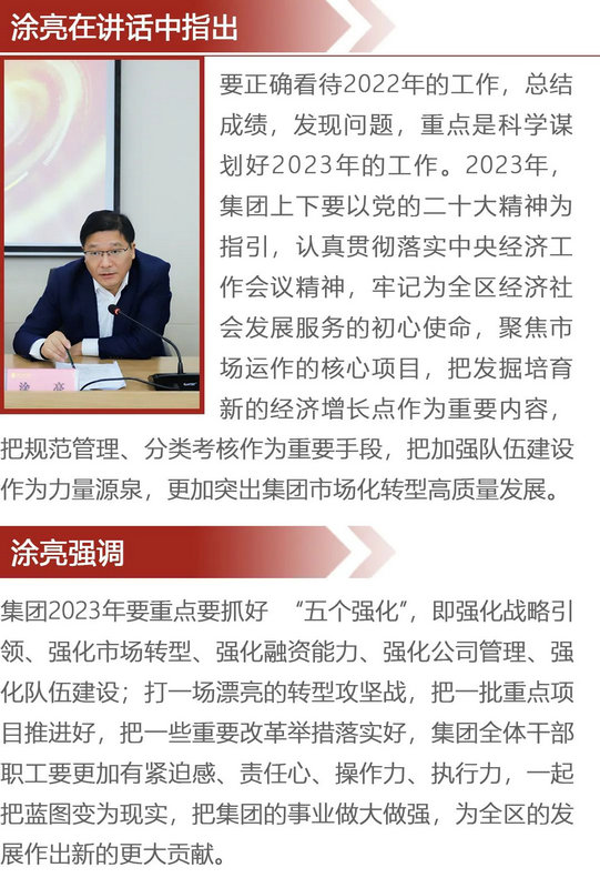1月12日上午,金开BY.COM召开2023年度工作务虚会,总结分析2022年主要工作情况,科学谋划2023年工作。区党工委委员、管委会副主任贺敏,BY.COM党委书记、董事长涂亮,BY.COM党委副书记、总经理李茶根出席会议并讲话。BY.COM党委委员、副总经理胡应庚主持会议。BY.COM领导班子成员熊永赋、黄新强、万居易、罗进群,BY.COM工会主席袁扣华,BY.COM部长助理及以上人员,各子公司副部长及以上人员参加会议。