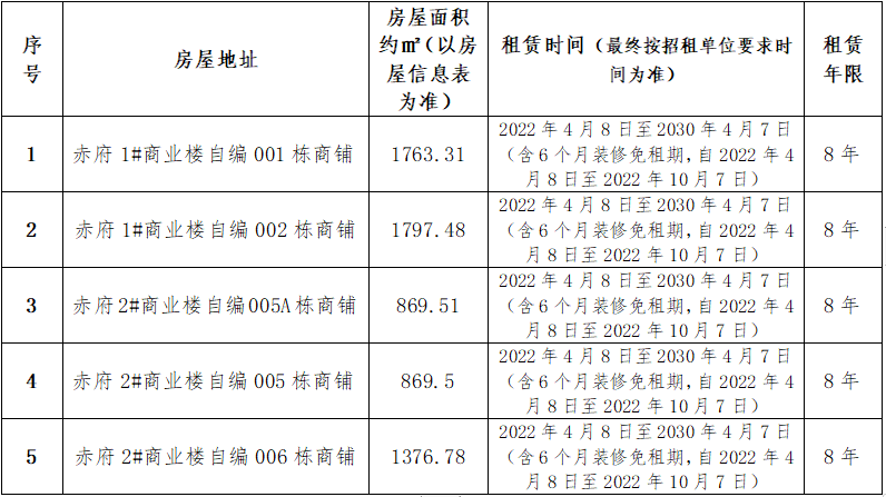 备注:(1)本次招租房屋涉及电表,水表、需中标人或直接委托人自费自行开户,房屋以现状出租,消防报建及其它审批手续自行办理,涉及一切维修改造工程产生的费用均由中标人自行承担。