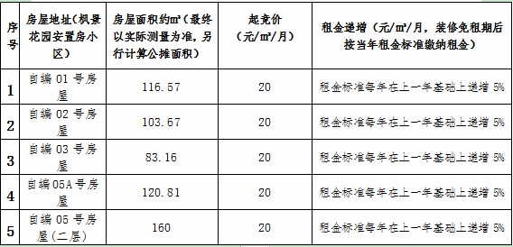 三、本次竞拍只报起竞价,房屋每间租金起竞价为: