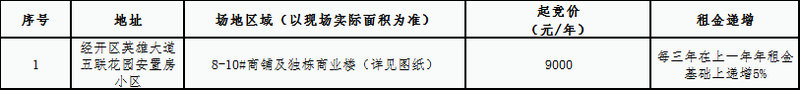 五联花园安置房小区商铺部分场地区域 招租竞拍公告