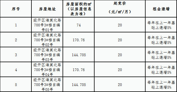 三、本次竞拍每间商铺租金起竞价如下: