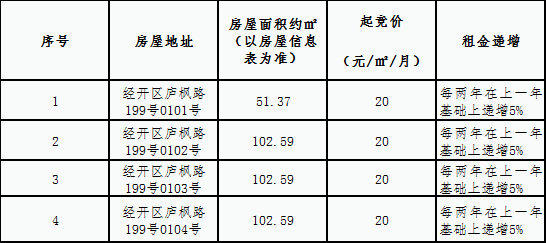 3、根据房屋信息表编号按顺序招租(原则上不隔开租赁),且所有商务条件均优先于承租面积大的承租户,以缴纳相应保证金时间排序。