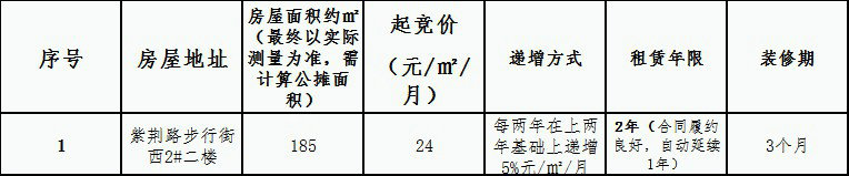 紫荆路步行街西2#二楼房屋租赁 竞拍公告