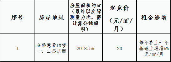 金桥慧景1#楼一、二层店面租赁竞拍公告