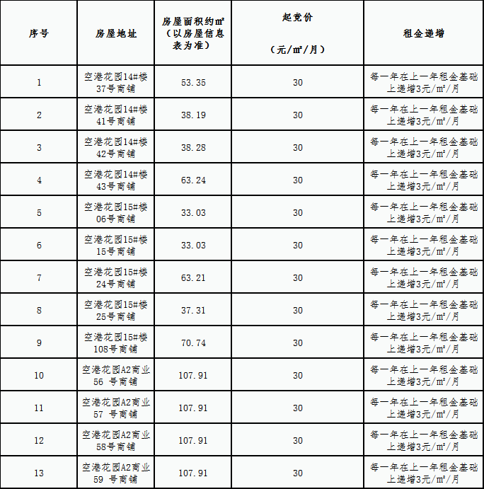 三、本次竞拍只报起竞价,房屋每间租金起竞价为: