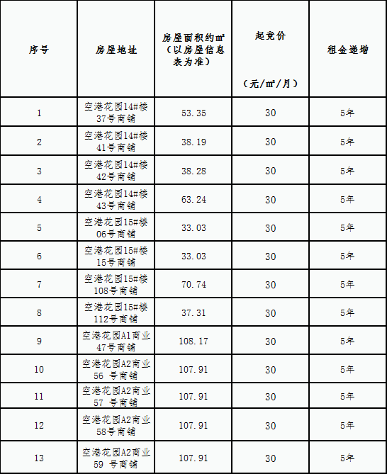 三、本次竞拍只报起竞价,房屋每间租金起竞价为: