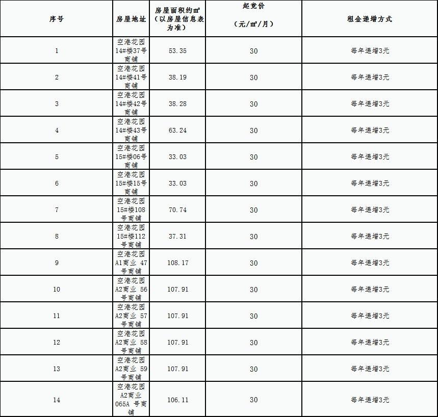 三、本次竞拍只报起竞价,房屋每间租金起竞价为: