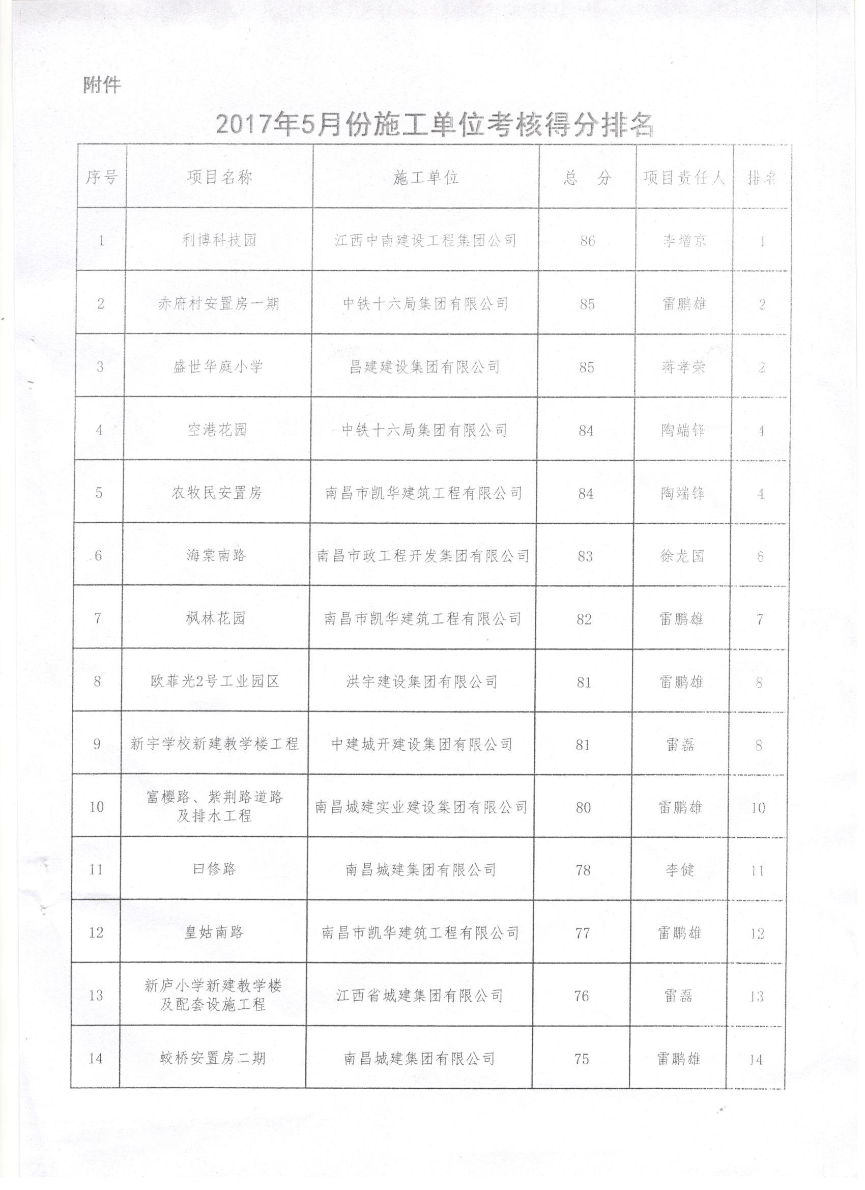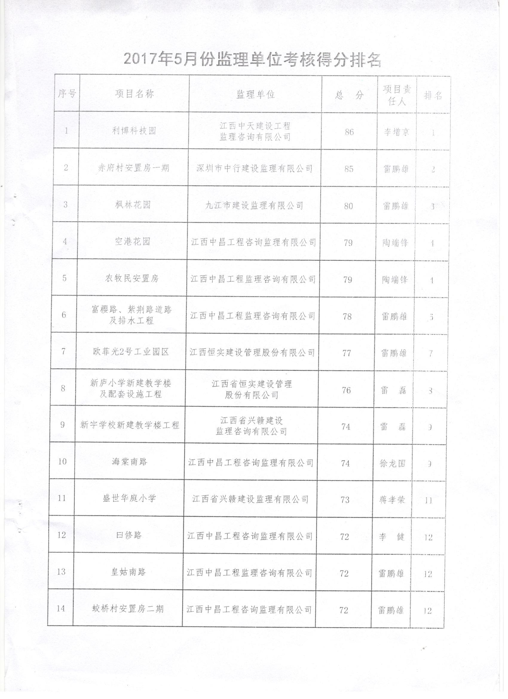 金开BY.COM2017年5月施工、监理考核公布啦!