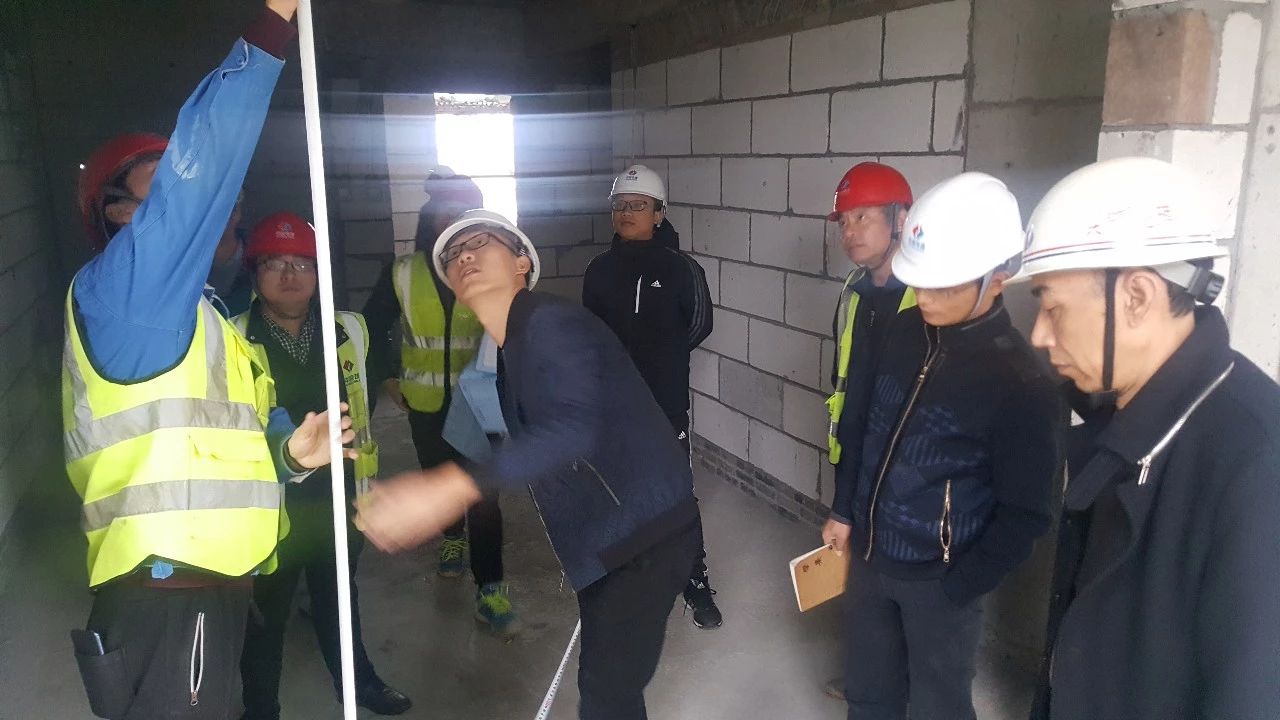 验收中,验收组一行首先来到施工现场对工程的实体质量进行检查,并结合设计图纸对混凝土构件的截面尺寸、楼层层高、板厚、门窗孔洞预留以及墙体砌筑质量进行了实测抽查;随后,对实体结构检测与相关质量保证资料进行了重点检查。