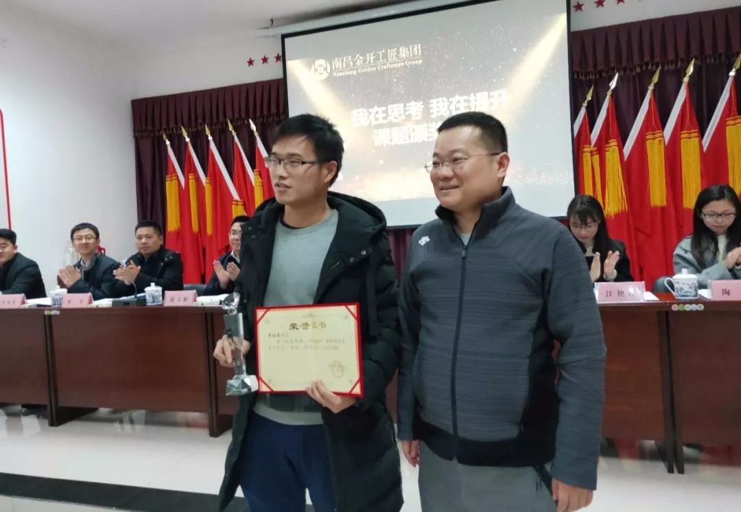 会议首先举行了“我在思考、我在提升”课题竞赛颁奖仪式,接着听取了工匠BY.COM三位高管及副部长以上员工述职汇报。听取汇报后,工匠BY.COM党支部书记胡应庚当场宣布述职评分结果。、