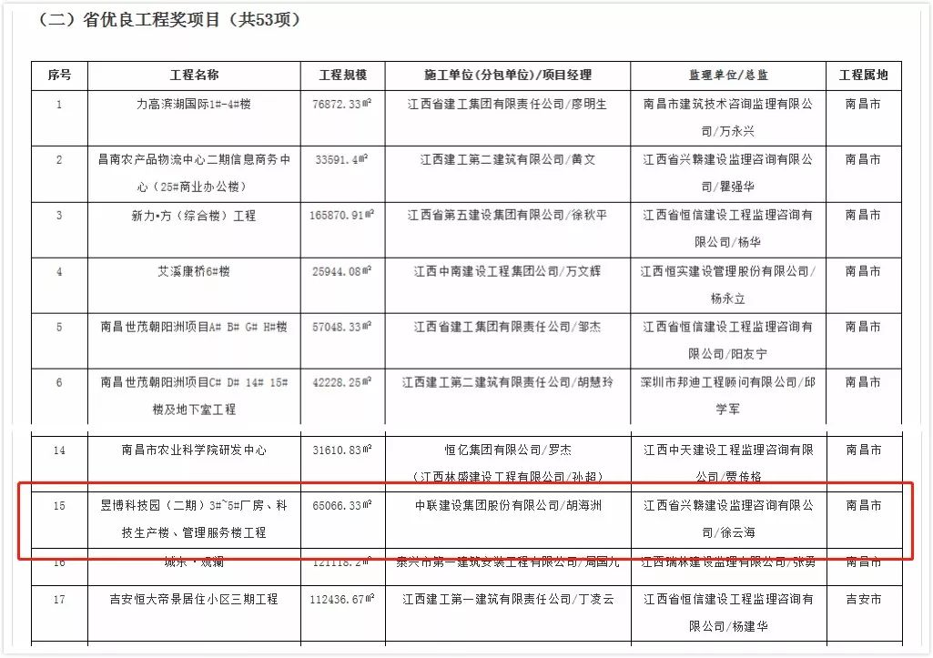 1月28日,江西省住房和城乡建设厅、南昌市城乡建设委员会分别公布了《2018年江西省优良工程奖名单》及《南昌市2018年度建筑工程滕王阁杯奖项目表》,由金开BY.COM下属项目公司作为建设单位实施的南昌昱博科技园二期标准厂房项目均榜上有名。至此,该项目成为经开区首个获得上述两个奖项的政府投资项目,也是区产业招商打造的又一精品工程。