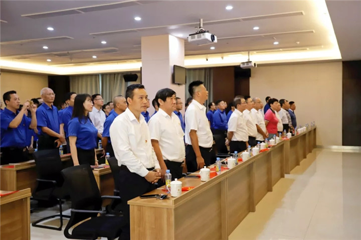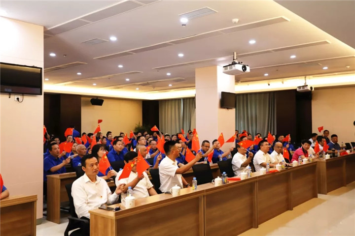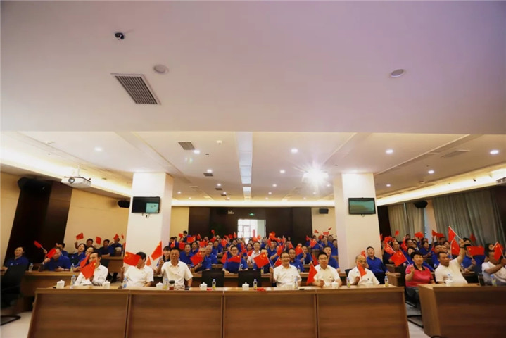 随着谢荣华按下启动键,伴随着激昂雄壮的国歌声,鲜艳的五星红旗冉冉升起、迎风飘扬,金开BY.COM在场的每一个人满怀崇敬之情向国旗行注目礼,表达对祖国母亲的崇高敬意和最美好的祝福。