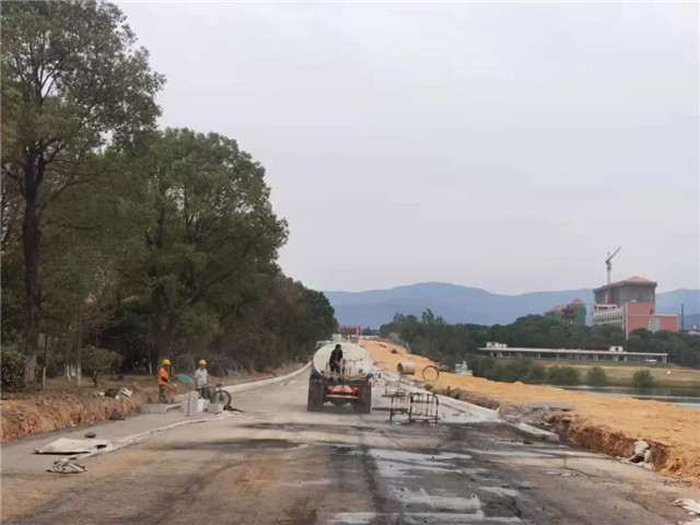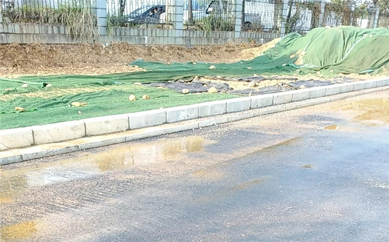 5、英雄大道南理学院段路缘石修砌,英雄一路至英雄二路雨水篦子修砌,裸土覆盖,洒水车洒水,确保工地无扬尘。