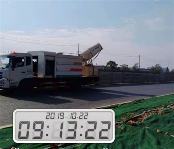 开启雾炮机降尘和道路清洗工作