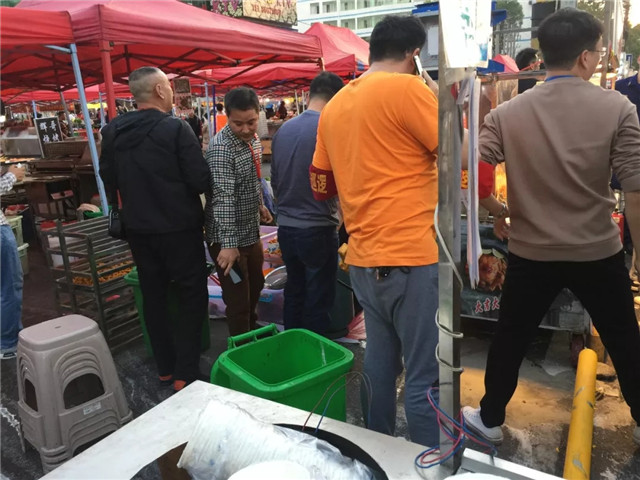 昨日傍晚,区城环局组织消防、公安、安监、市场局、建总公司等相关单位及专业人员联合对各摊点的燃气器具进行逐一检测和指导,对查出的问题进行登记限时整改并复查。保障紫荆路夜市燃气使用安全。