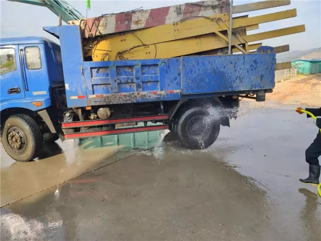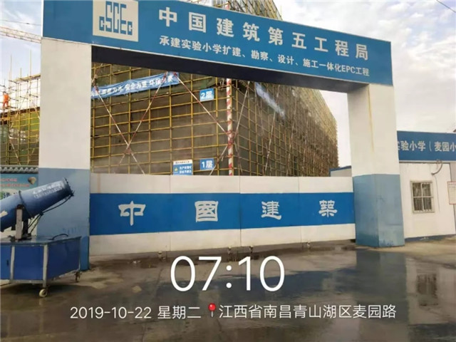 启雾炮机降尘,清洗现场道路,时刻大门口整洁