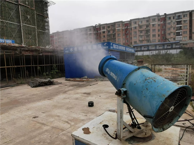 开启雾炮机降尘,清扫施工用车通道,保持施工现场干净整洁