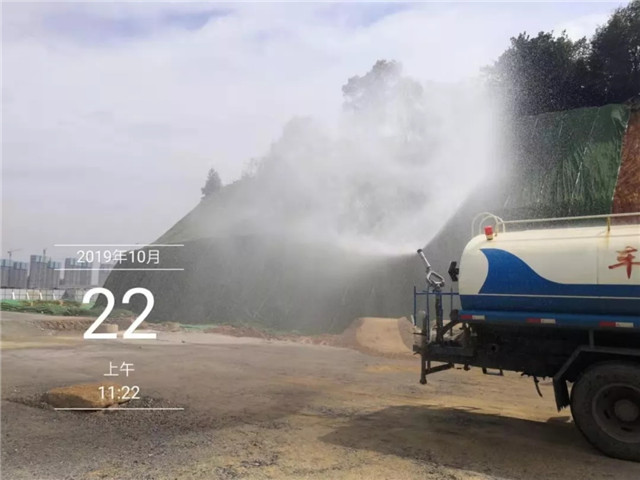 开启雾炮机降尘,种草区域人工洒水,补草种