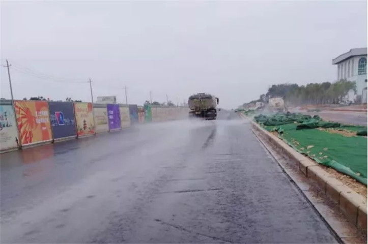 双港大街、黄家湖东路洒水车2台,工程车2台,巡查整改人员10人。
