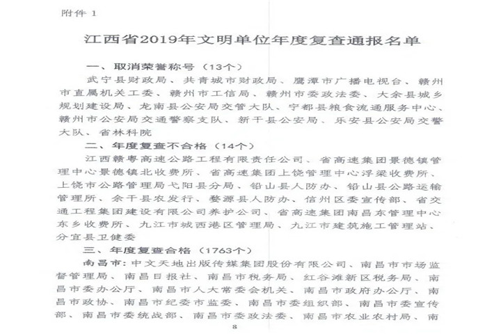 【喜报】金开BY.COM顺利通过江西省2019年文明单位年度复查