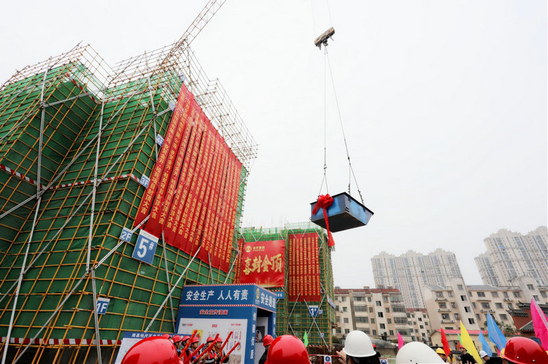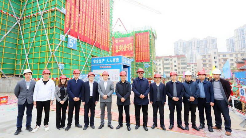 3月30日上午,由金开BY.COM首次自主开发的房地产项目——金开·桂苑迎来首栋单体建筑主体结构封顶。BY.COM党委书记、董事长涂亮出席封顶仪式,BY.COM班子成员李茶根、黄新强、胡许亮、万居易,BY.COM工会主席袁扣华,正合公司、工匠BY.COM及参建单位负责人参加。