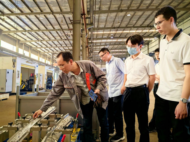 访企业寻密码 深悟科学决策——可行性研究是决策落地保障的“最后一公里”。科学决策一定要开展可行性研究,多方了解情况,综合评判,合理取舍,使决策符合实际情况。在园区负责人指引下,选调生一行先后调研参观了创客绿色科技产业园、凯马机电产业园。作为新建高标准厂房,创客绿色科技产业园锚定我区主导产业发展方向,为经开区招商引资提供良好基础设施保障。随后选调生们调研了凯马机电产业园区内江西普热斯勒先进成型技术公司和江西大东汽车配件公司,现场参观了解了企业关于汽车零部件先进热成型制造技术,通过掌握先进成型技术,自主研发高端机械制造设备,助力企业在日益激烈的竞争环境中行稳致远。