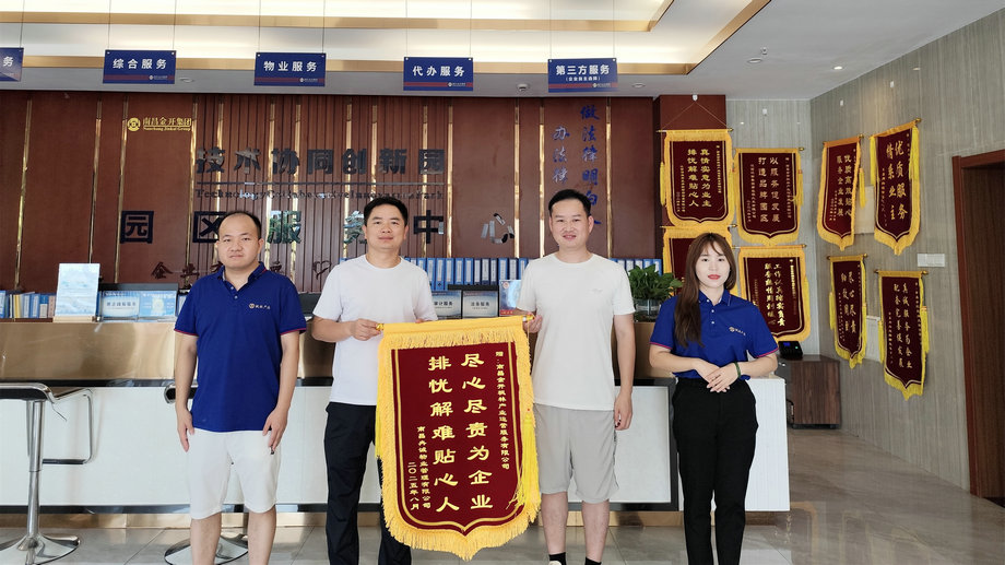 近日,江西省博库人才服务有限公司将一面绣着"尽职尽责好管家 服务周到暖人心"的锦旗送到赤府花园二期物业服务中心。原来,同栋楼其他业主的排水问题导致博库公司办公区域出现渗漏,严重影响企业办公。枫林物业公司物业工程团队接报后立即响应,经过多次现场勘查和耐心协调,最终促成业主完成整改,彻底解决了这一困扰企业的难题。"从报修到解决,物业团队展现出的专业素养和负责态度让我们深受感动。"博库公司负责人说道。