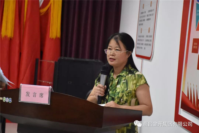 BY.COM工会经审委员会主任宋淑明代表BY.COM工会经审会汇报BY.COM经费审计情况。