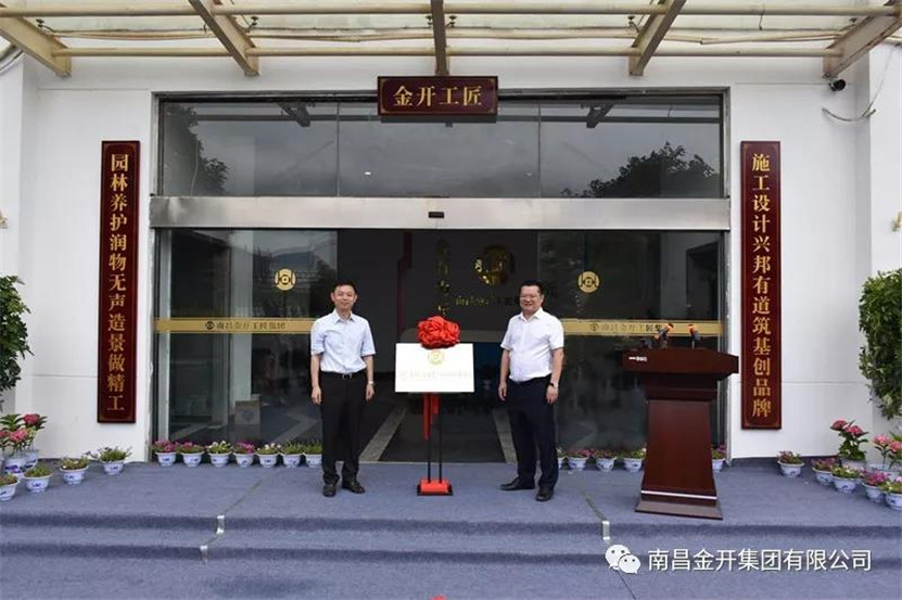 仪式最后,程建兵、胡顺明共同为“南昌金开工匠建设工程BY.COM有限公司”揭牌。
